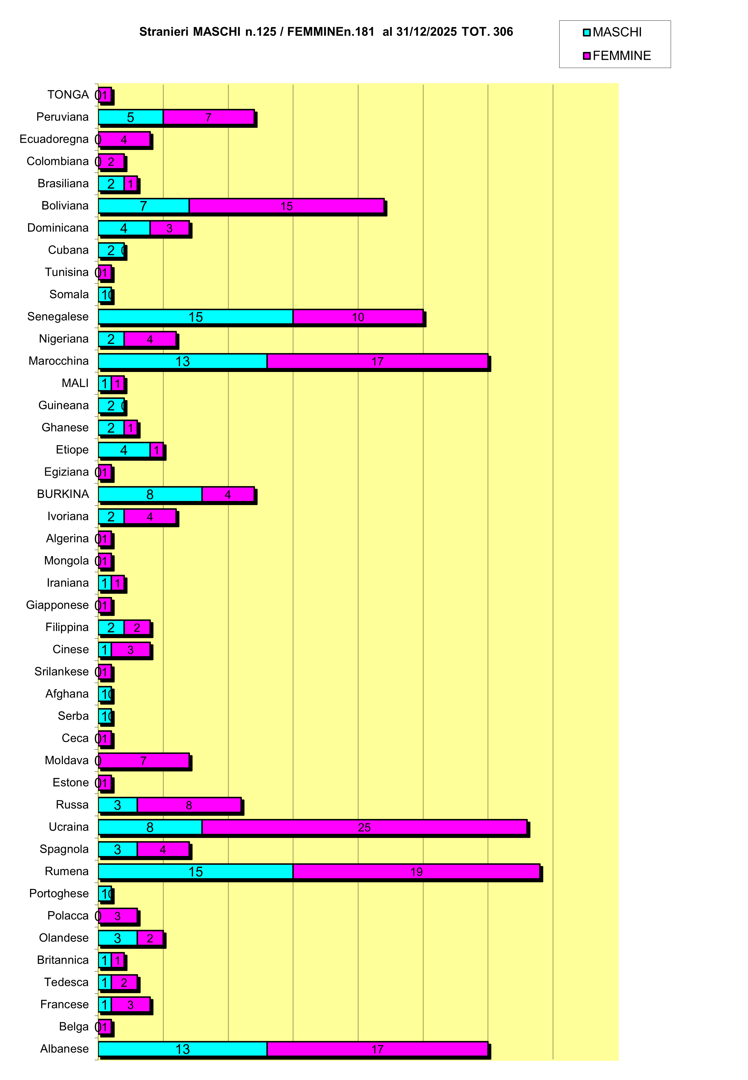 Grafico presenza stranieri al 31 dicembre suddiviso per cittadinanza