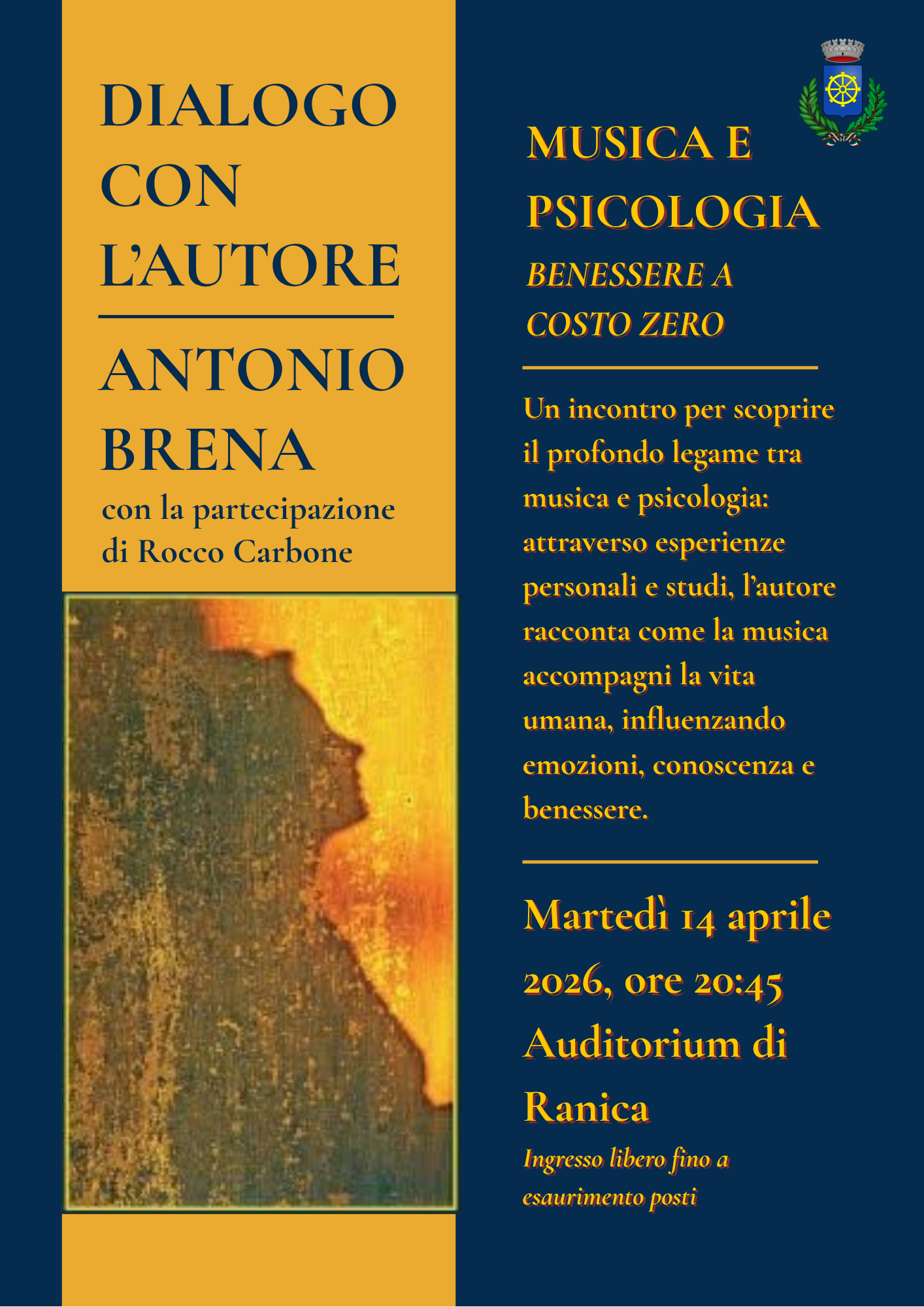 Martedì 14 aprile 2026, alle ore 20:45, presso l’Auditorium di Ranica, si terrà il dialogo con l’autore Antonio Brena, con la partecipazione di Rocco Carbone.