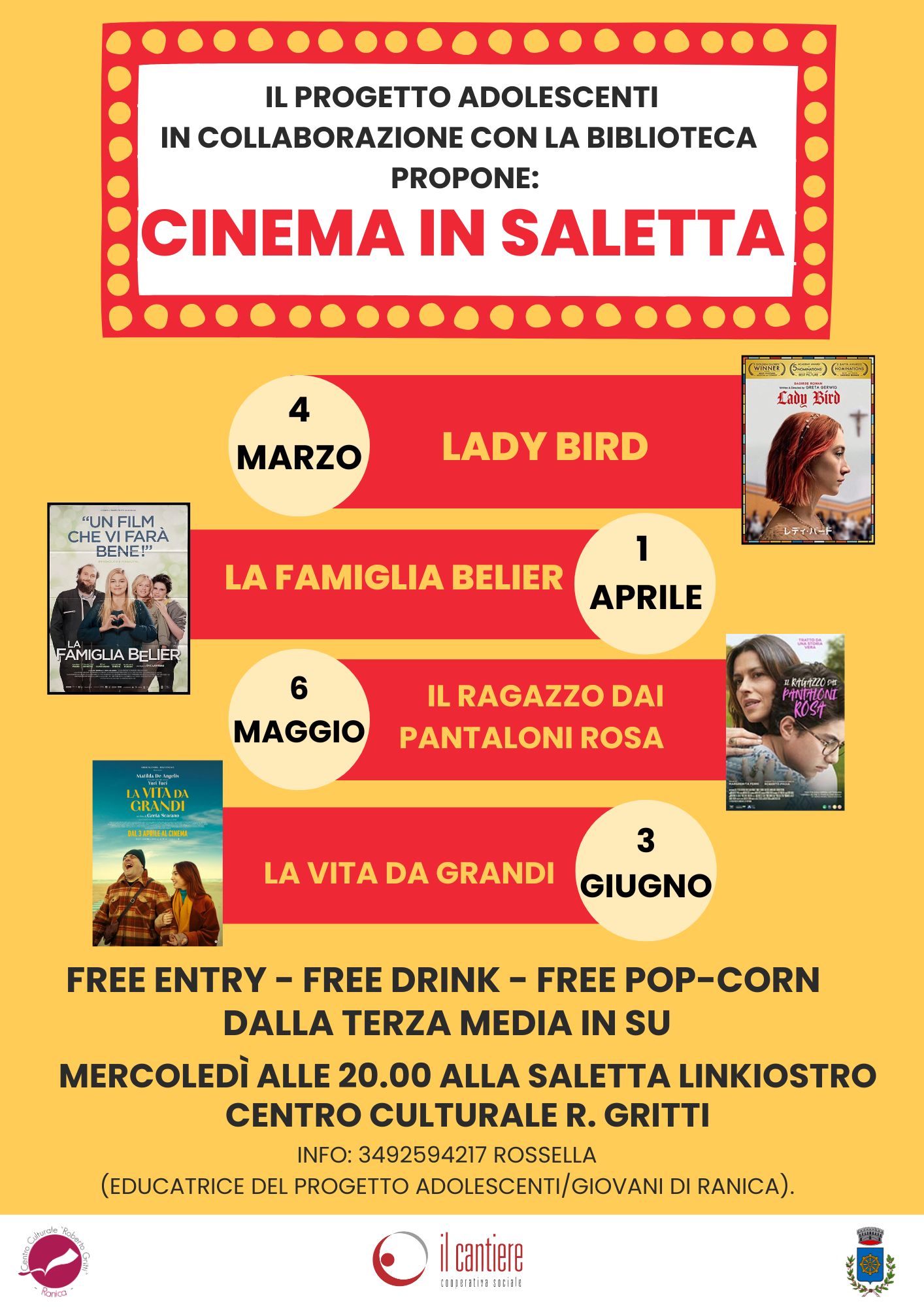 Il Progetto Adolescenti in collaborazione con la biblioteca propone “Cinema in saletta”.
